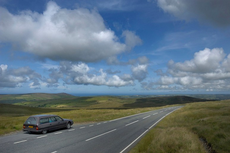 • Op eenzame hoogte in de Preseli Mountains in Wales, in de verte schittert de Ierse zee. 24 07 09, 13:55 uur