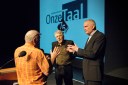 • Van Kooten en De Bie tijdens het 75-jarig jubileum gebeuren van het Genootschap Onze Taal